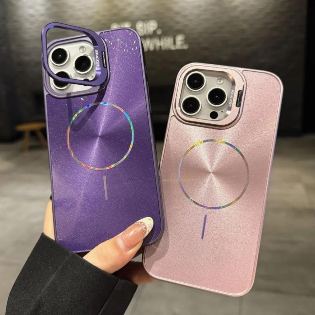 CD Texture Laser Glitter For Magsafe Lens Stand Case For iPhone Air 17 16 15 14 13 12 11 Pro Max Wireless Charge Bracket Cover