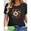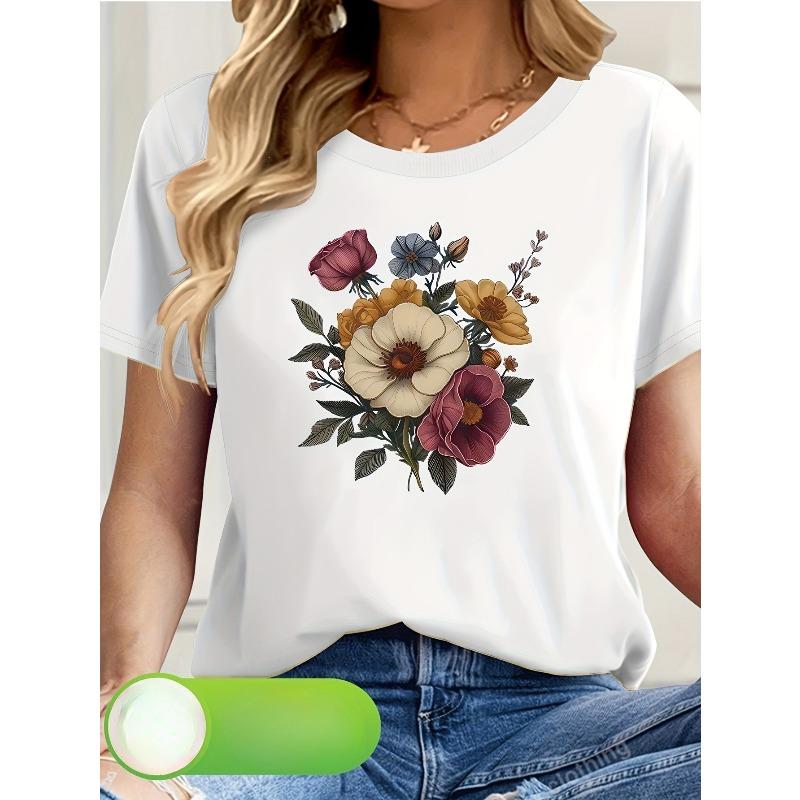 European Size Women's Short-Sleeve Blouse -Elegant Floral Print T-Shirt, Spring/Summer Casual Top,Short-Sleeve Blouse for Weddings, Parties,Daily Wear