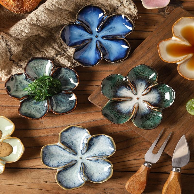Vintage Ceramic Flower Shaped Craft Dish Multi-Color Dipping Sauce Small Bowl Creative Kitchen Gift