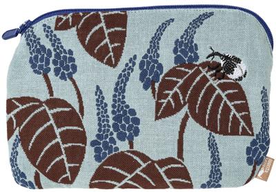Morita MiW Pouch, Flower and Weevil Design, Light Blue. The MiW Color Harmony of the Front, Lining, and Zipper Is Fresh. Made from a Slightly Tightly