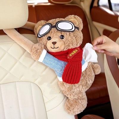 1 Piece of Cute Bear Car Seat Back Tissue Holder Car Bear Tissue Box Bear Doll Hanging Storage Bear