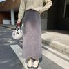 Korean Style Slimming Faux Mink Knit A-Line Midi Skirt for Women - Warm, Winter-Chic