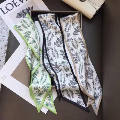 Plant Print Fashion Hair Ribbon Scarf Neck Tie Bag Scarfs Satin Silk Skinny Headscarves For Women