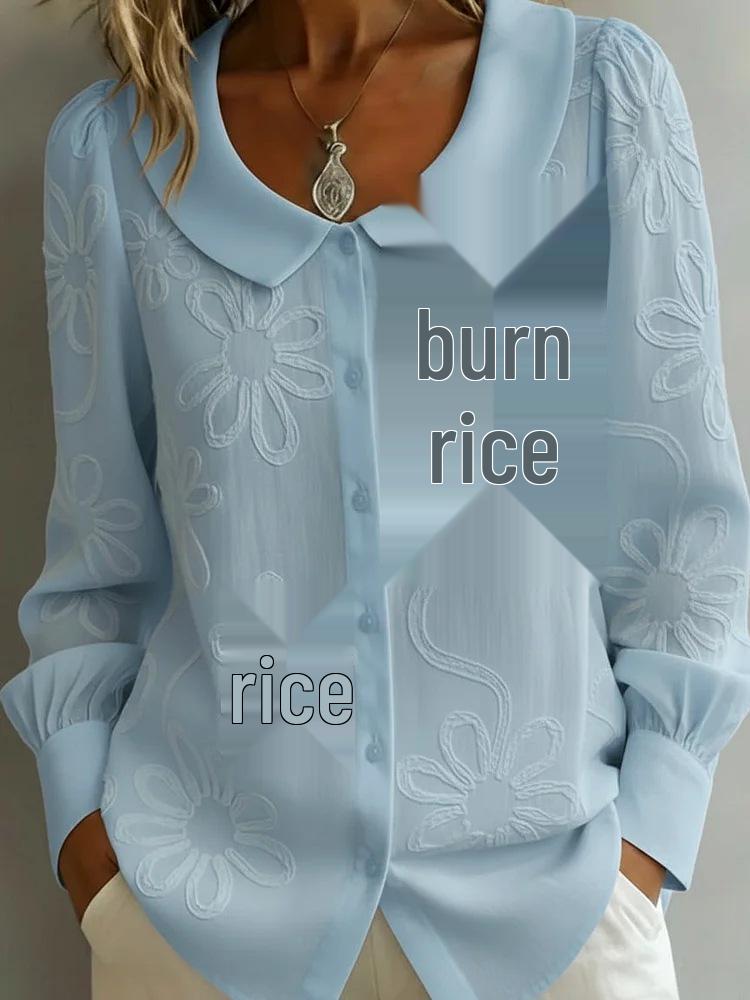 2026 Spring-Summer Embroidery Jacquard Doll Collar Long Sleeve Shirt