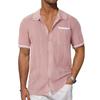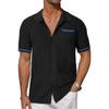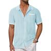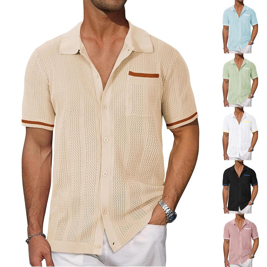 Men's Casual Color-blocked Short-sleeved Shirt, Men's Hollow-out Breathable Button-up Shirt With Lapel