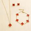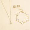 Titanium Steel Four-Leaf Clover Mother-of-Pearl Jewelry Set: Necklace, Bracelet & Earrings - Women's Fashion Simple Luxury Design.