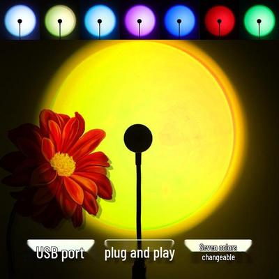 Sunset Rainbow Projection Light: Creative USB Atmosphere Lamp with Seven-Color Options for Live Backgrounds