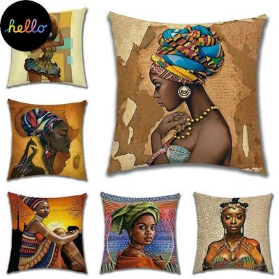 Home Decor Pillowcase Ethnic African Women Polyester Car Sofa Cushion Cover 45x45cm
