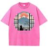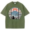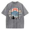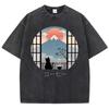 T Shirt Vintage Washed 100% Cotton T-Shirt Japanese Style with Mountain Cat Graphic Tee Casual Streetwear Spring Summer Fall