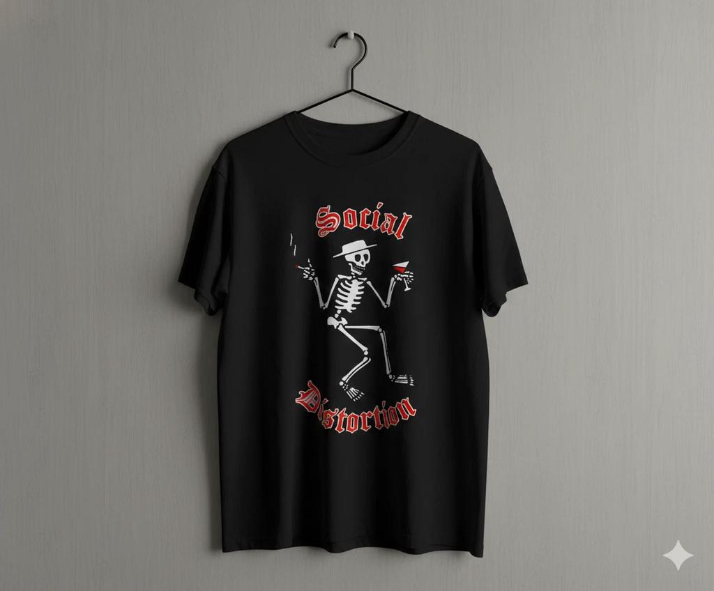 Social Distortion Skeleton Graphic T-Shirt Black Punk Rock Band Tee - T479