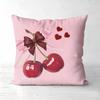 Pink Cherry Pillows With Bows Heart Pattern Polyester Pillowcase, Sofa Decorative Cushion Cov Headboard Pillow