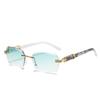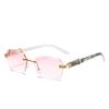 Luxury Rimless Sunglasses Women Fashion Square Sun Glasses Tint Color Printed Leg Men Travel Casual Shades