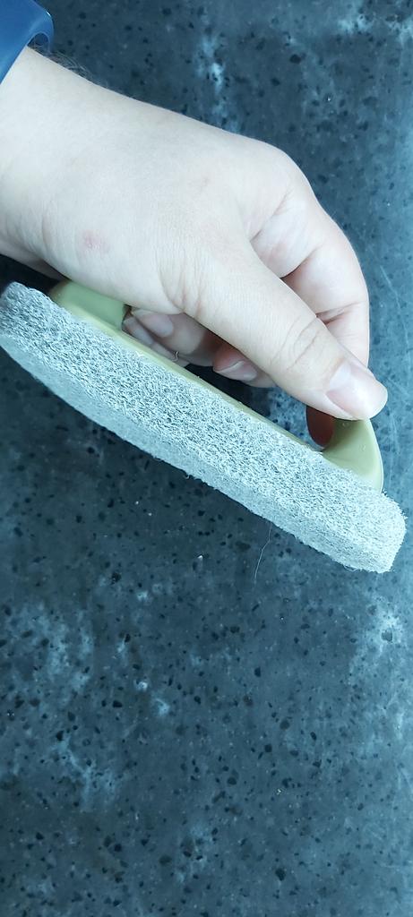 Gąbka z wysokiej jakości rączką. Szczególnie dobrze jest czyścić wanny i płytki. To już drugi zakup. Polecam do zakupu.