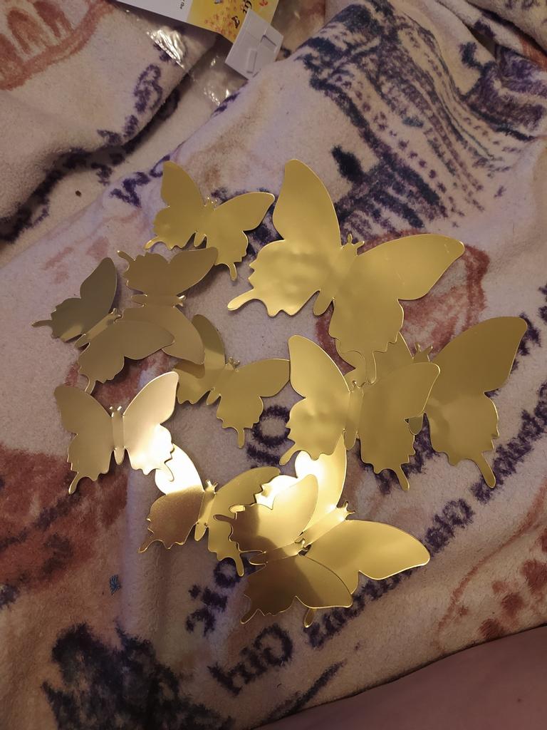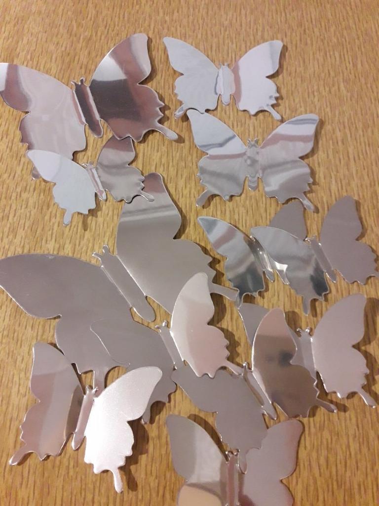 🦋MOTYLE OZDOBNE🦋 Samoprzylepne, odblaskowe motylki do celów dekoracyjnych (złote i srebrne). Można go łatwo przymocować do wszystkich gładkich powierzchni, a nawet szorstkich i nierównych powierzchni. To już moje 4 zamówienie, więc mogę polecić bez zastrzeżeń i w razie potrzeby kupię ponownie 😄. Do góry 🌷