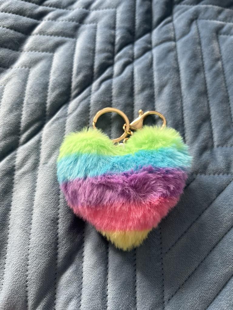 15x10cm Wielobarwne futro z sercem Brelok puszysty Faux Królik Futro Pompon Breloczek Brelok Torba samochodowa