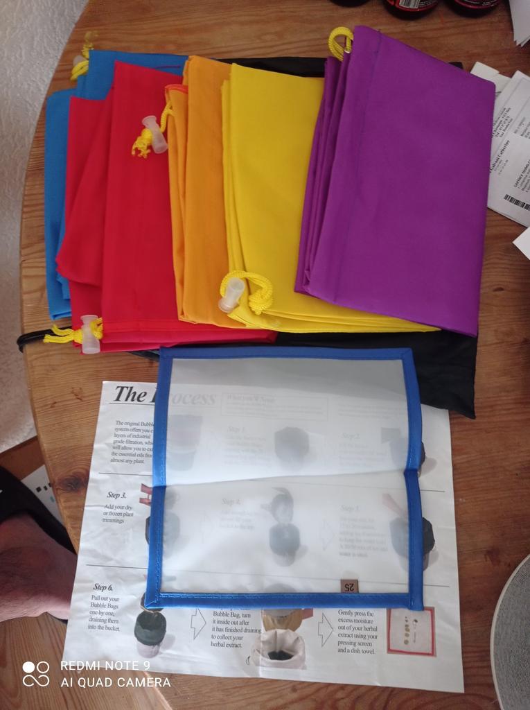 Produkty są zgodne z opisem sprzedawcy. Torby dobrej jakości. Wszystko, co musisz zrobić, to wyodrębnić go! 😜😉 Zobaczymy rezultat. Zobaczymy, czy torby wytrzymają użytkowanie ! W zestawie znajduje się 5 worków ekstrakcyjnych, woreczek do przechowywania (bardzo praktyczny) oraz sitko do suszenia wyekstrahowanego materiału. Doskonały. Niebieski worek = 220 mikronów, czerwony worek = 160 mikronów, pomarańczowy worek = 120 mikronów, żółty worek = 73 mikrony, fioletowy worek = 25 mikronów. I Sito suszące = 25 mikronów. Mały problem: nieprzyjemny rybi zapach. Radość przesyłek przepływających przez porty świata. 😜😉✌️👌💪👍🤙🤟
