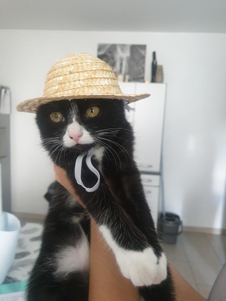 Szybko otrzymałem, mój 4-miesięczny kotek nie może znieść kapelusza, ale fajnie było robić zdjęcia prawdziwemu modelowi lol