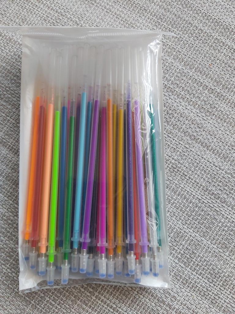 Jest 48 wkładów do długopisu, 10 z nich jest z brokatem, a reszta to metaliczne i jasne kolory. Bardzo ładne,