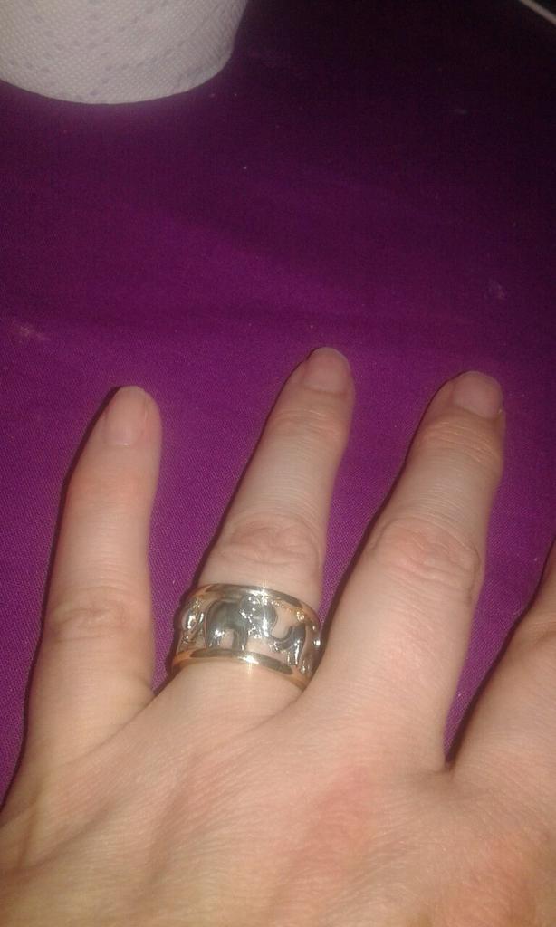Pierścionek wygląda pięknie. Niestety słonie nie chodzą dookoła, nie widać tego na zdjęciach.