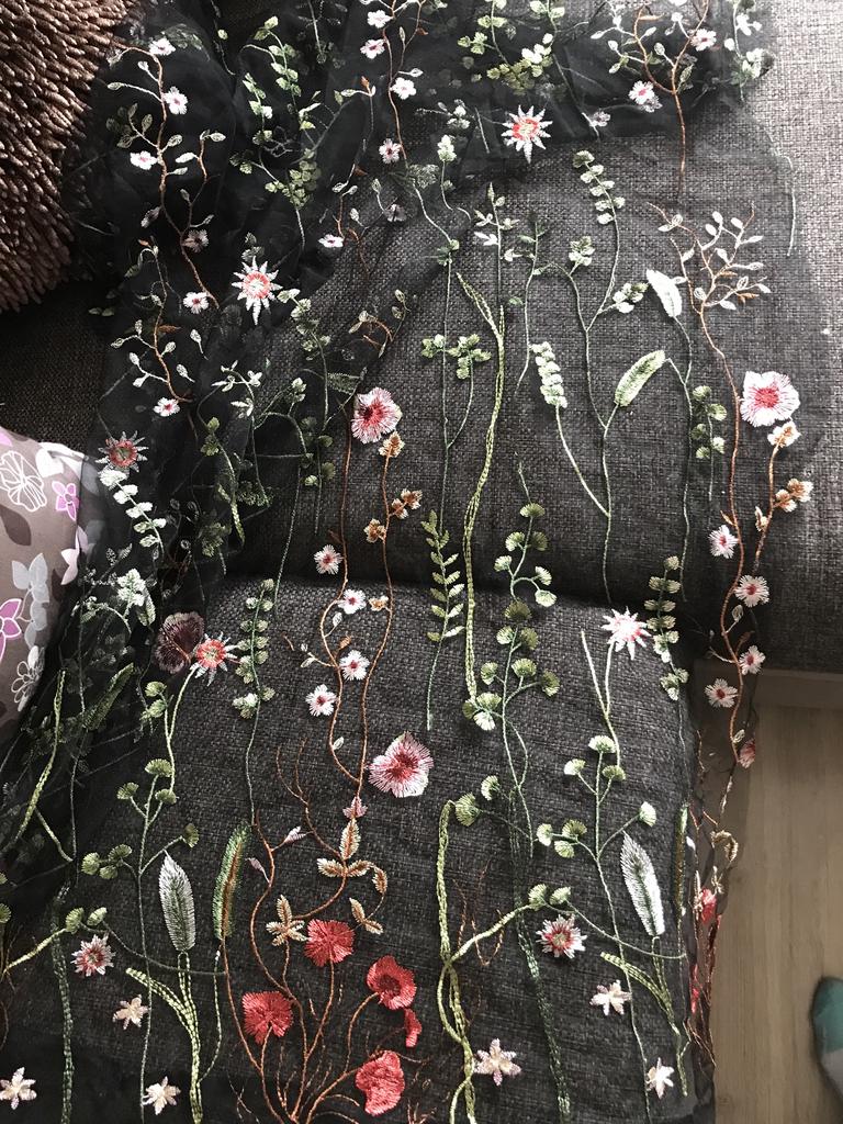 Haftowana kwiecista koronkowa tkanina Czarna siateczkowa suknia ślubna Tkanina 47 "szerokość na metr