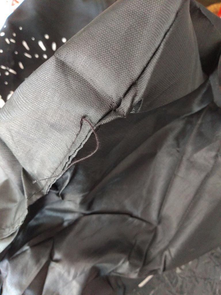 Bardzo dobra jakość materiału, mocny materiał. Lecz nie wiem czy tylko w moim egzemplarzu czy we wszystkich, podszewka kształtem nie jest dopasowana do kształtu torby. Dziwne to trochę...
