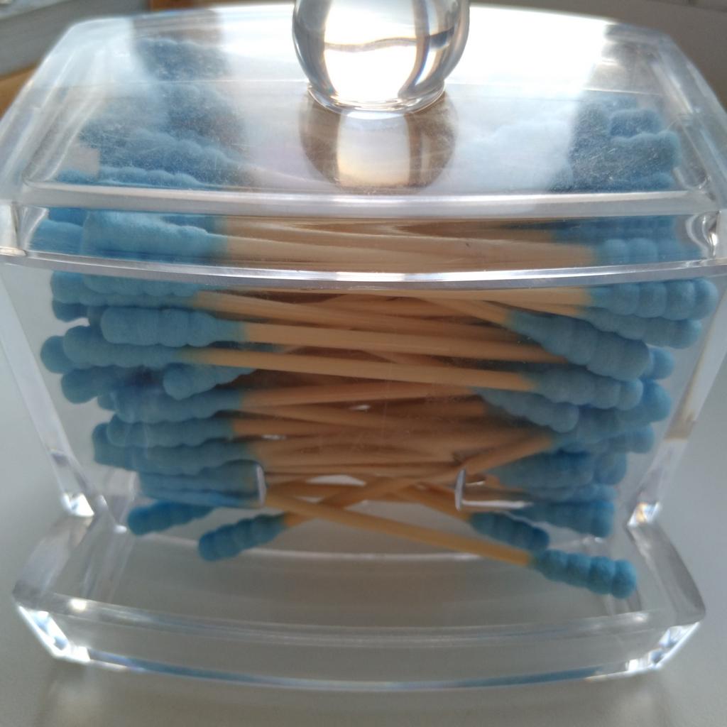Waciki bawełniane na drewnianej podstawie. Dobre pałeczki i, co bardzo ważne, w sam raz do pojemnika. Nie kupuję plastikowych. Dobry produkt i cena, dziękuję!