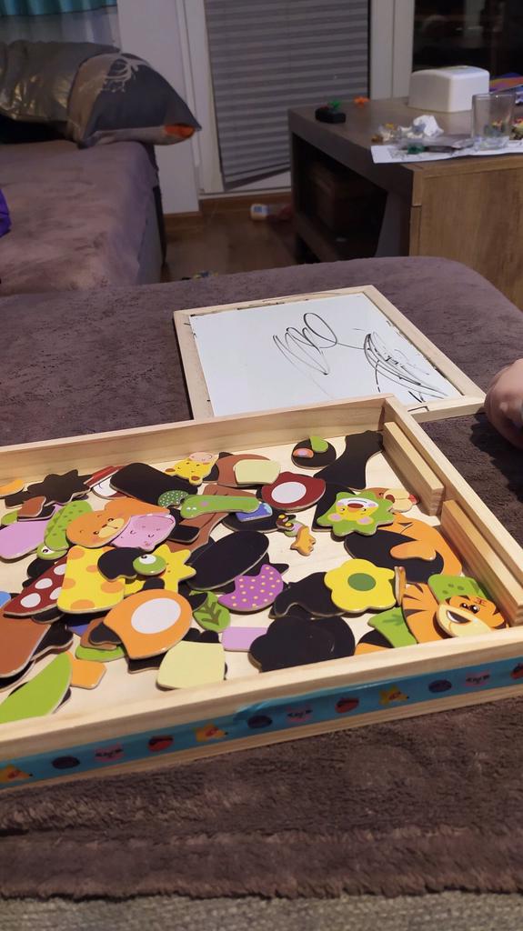 Drewniane Magnetyczne Puzzle Figurki Zwierzęta Pojazd Cyrk Tablica do Rysowania 5 Stylów Pudełko Zabawka Edukacyjna Prezenty