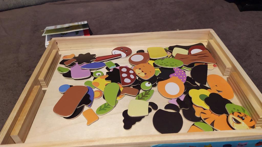 Skrzyneczka drewniana (mimo nie zniszczonego opakowania) była popękana (na zdjęciach sklejona już niebieską taśmą). Niektóre elementy bardzo malutkie. Nie polecam małym dzieciom. Poza tym ładny produkt i dzieciom się podoba.