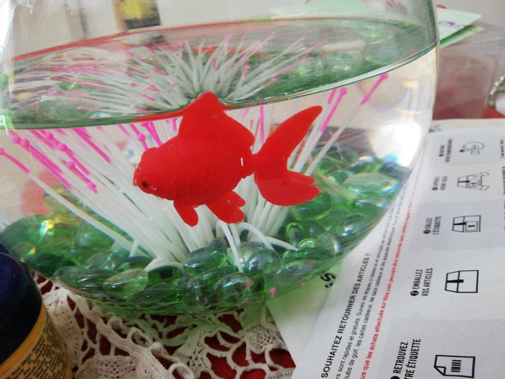 Ładna szybka dostawa, dziękuję, nie wkładaj prawdziwych ryb, bo mogłoby im to zaszkodzić