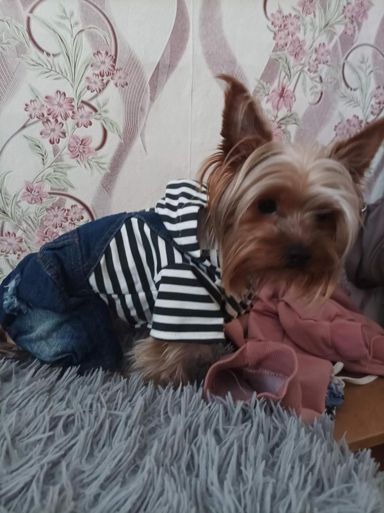 Cudowny garnitur!!!! Bardzo wysoka jakość! Idealnie pasuje do 3kg Yorkie!!!! Polecam!!!!!