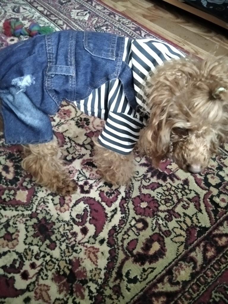 Rozmiar L pasuje na pudla miniaturowego. Kombinezon jest piękny, wygodny, piękny, jakość jest doskonała. Tylko tabela rozmiarów się nie zgadza, wziąłem rozmiar M, nie pasował, sprzedali go Yorkowi