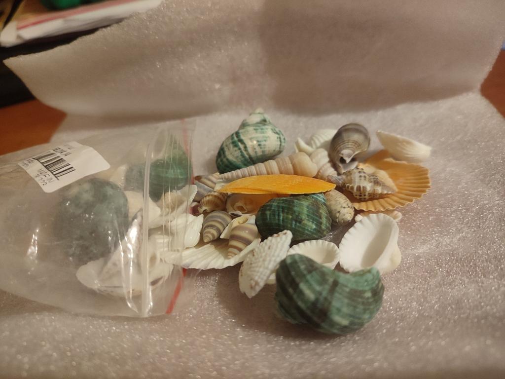 Opakowanie jest uszkodzone. Nie ma folii bąbelkowej. Co najmniej 30% muszli jest uszkodzonych