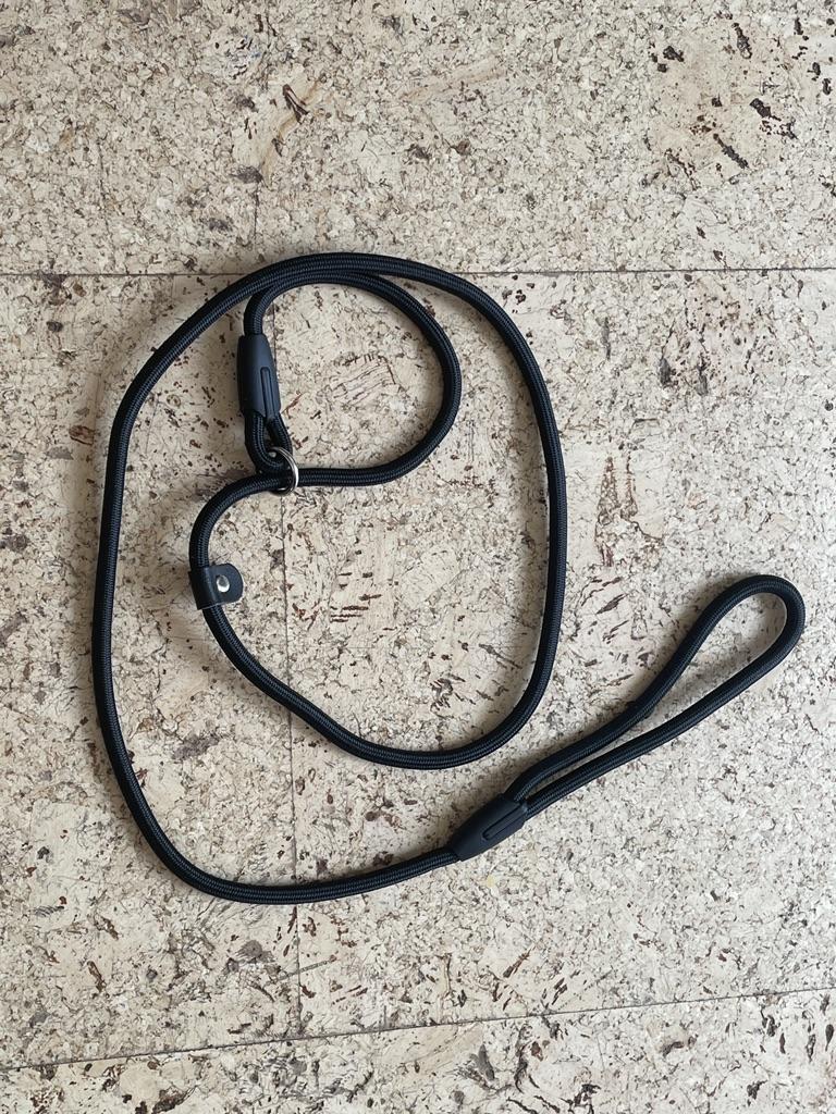 Bardzo cienki, a stoper do smyczy, aby dopasować ją do szyi, wykonany jest ze skóry Chepa, a lina jest tanim materiałem, nadaje się tylko dla szczeniaka lub małego psa, nie jest przeznaczona dla psów dużych ras, ponieważ ją zerwie, więc kupuj tylko Twój pies jest mały lub dla szczeniaka