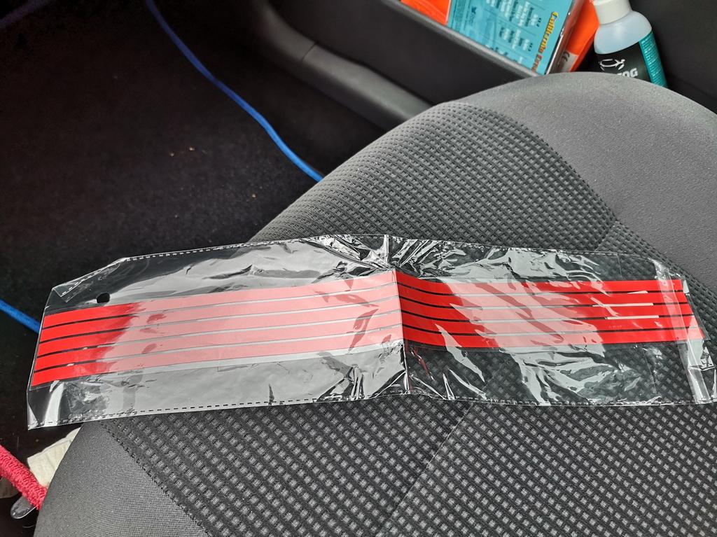 Ostatni gówniany, cienki jak wafelek pasek o długości 25 cm. Gdzie mam to przykleić?? W samochodzie z pudełkami zapałek. Całkowite Verrarsche.