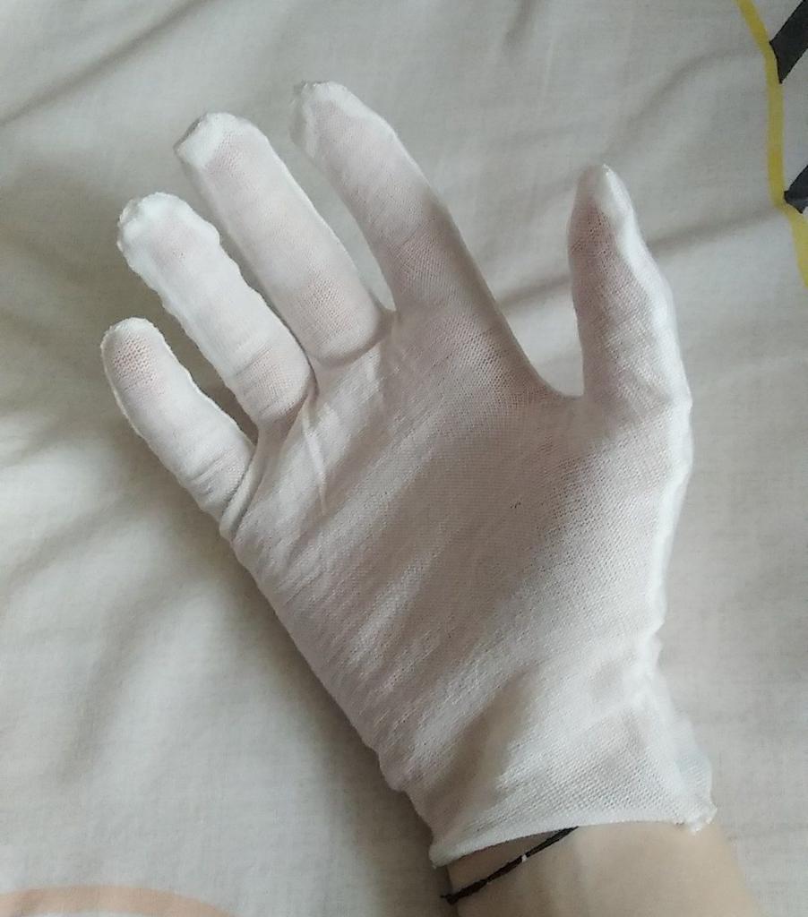 Bardzo cienkie, dobrze nadawałyby się pod gumowe rękawiczki, jednak jak zwykle były trochę krzywo uszyte, miejscami wystawały nitki
