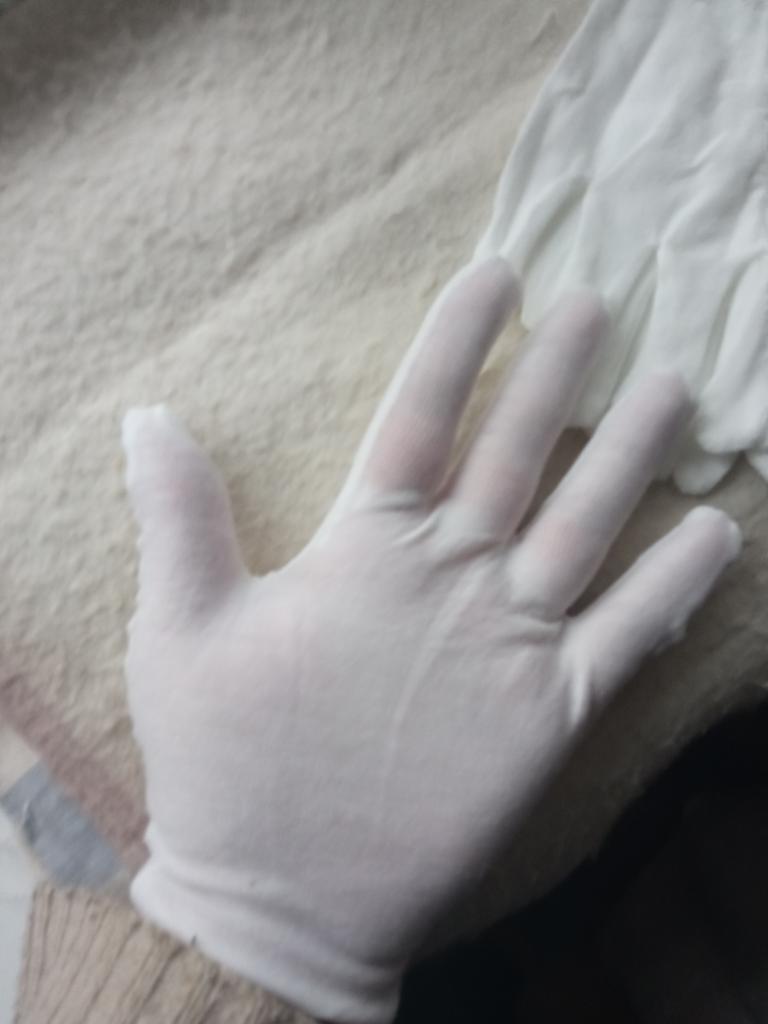 Przyjemne w dotyku, ale trochę przezroczyste i to jest minus :'( Pasuje do najmniejszej dłoni o rozmiarze 15.