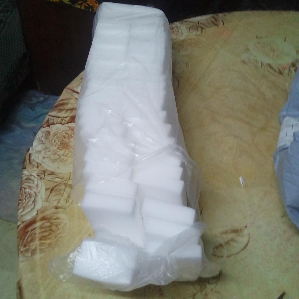 Złożyłem nowe zamówienie na te wspaniałe gąbki, ponieważ bardzo mi się spodobały. ✌🏼 😊 To wygodne opakowanie zawierające 50 sztuk (ogromny zapas, który wystarczy na kilka miesięcy) gąbek wykonanych z ekologicznych materiałów, którymi można wyczyścić wszystko: od butów po armaturę łazienkową, okap kuchenny, blaty, przybory kuchenne itp. bez żadnego wysiłku!!!🔝👏🏼😎 Gąbka potrafi usunąć oznaki starzenia się przedmiotów (takie jak pismo czy brud) dając im nowe życie (co widać na zdjęciach)!! 😉 Gąbki są bardzo wszechstronne: można je ciąć lub składać, aby zapewnić bardziej skuteczne i ukierunkowane czyszczenie.😎 Wystarczy zwilżyć gąbkę wodą i gotowe: pocierając przedmiot uzyskasz dokładne i skuteczne czyszczenie.🥳 Wymiary gąbki to: 10x6 centymetrów przy grubości 2 centymetrów.💯 Gąbki są obecnie w super promocji, polecam skorzystać!!🥳🙌🏼 Paczka dotarła dobrze zapakowana w ciągu 15 dni roboczych.📦