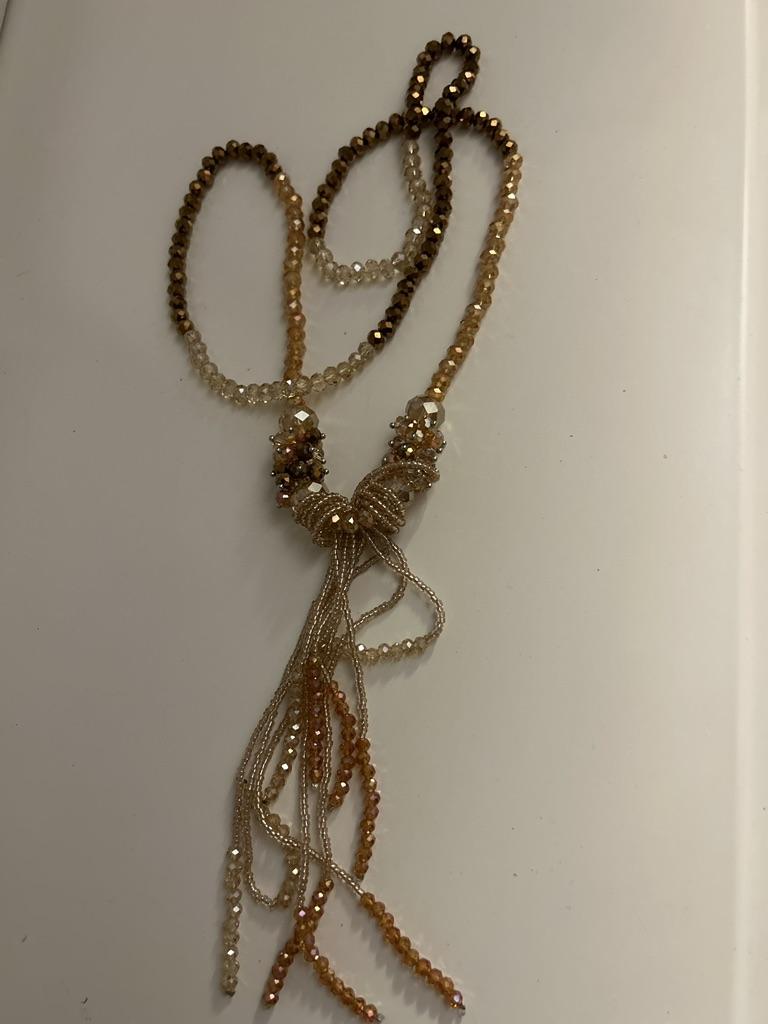 Jest to piękny naszyjnik, jeśli chcesz, wiązany chwost można zdjąć. Nie dotarł w żądanym kolorze, więc spróbuję ponownie zamówić nowy naszyjnik, mając nadzieję, że tym razem będzie to kolor, który wybrałem i... Usunę chwost, żeby wyglądał zupełnie jak inny styl.