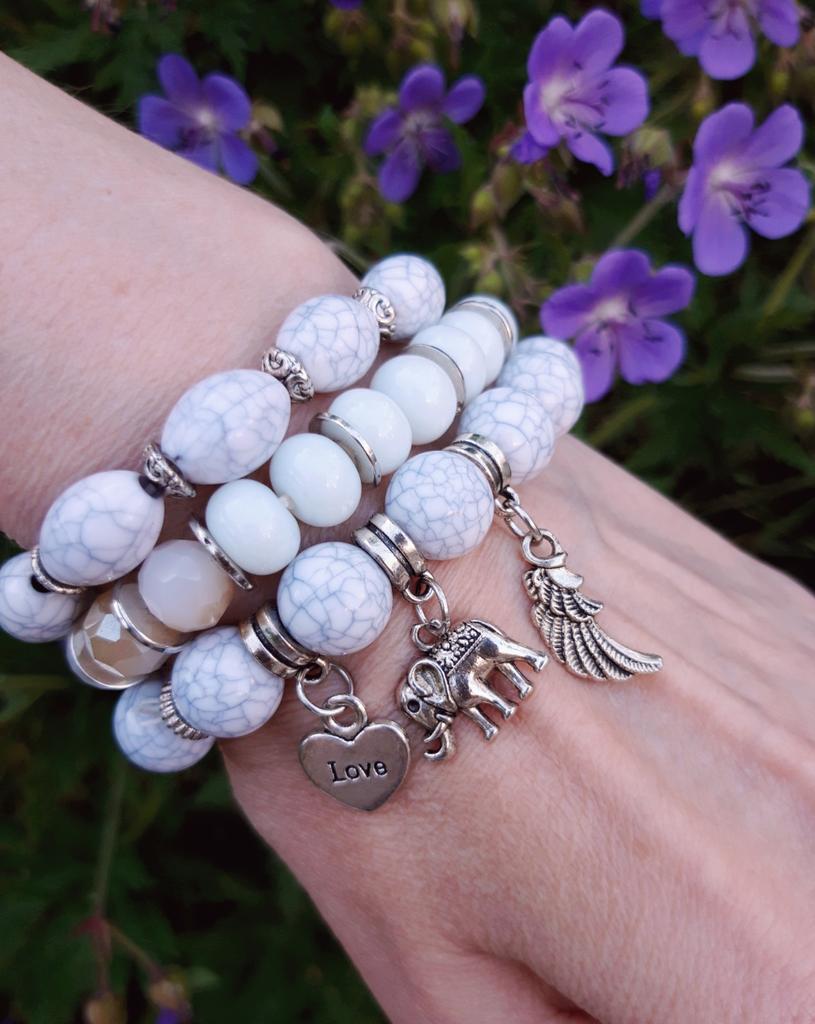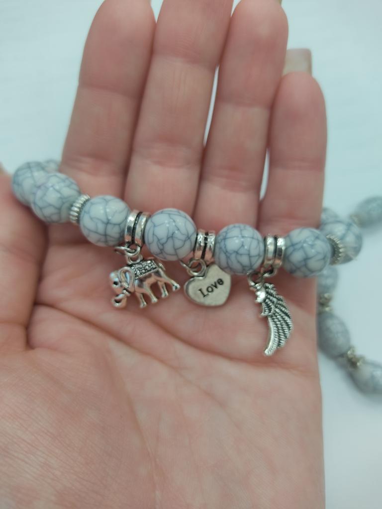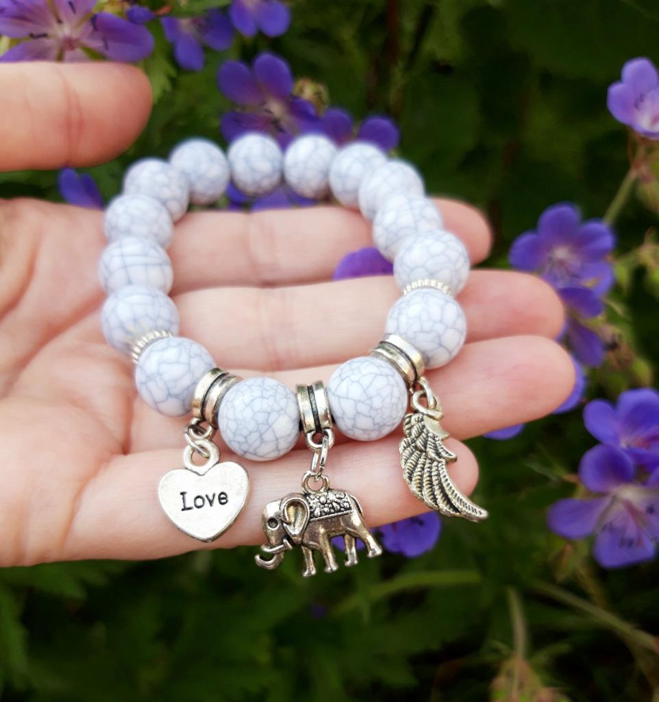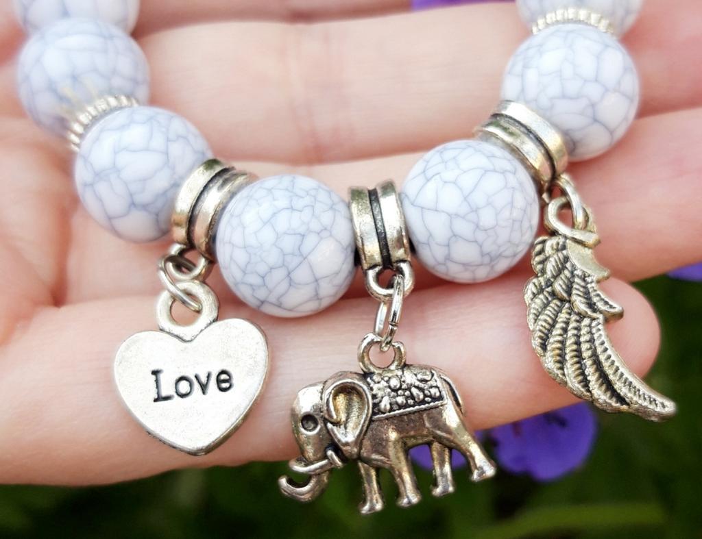 Bransoletka z kolorowym klejnotem Słoń zroszony Love Wings Boho 3 sztuk/zestaw Marmurkowa bransoletka wysoka elastyczna