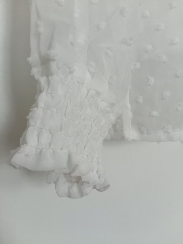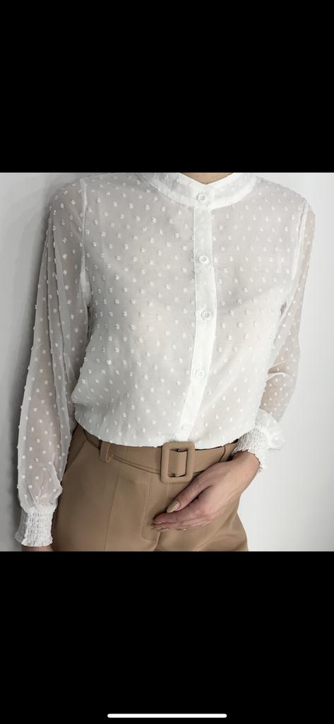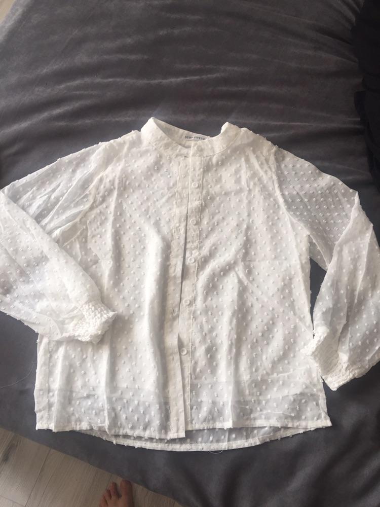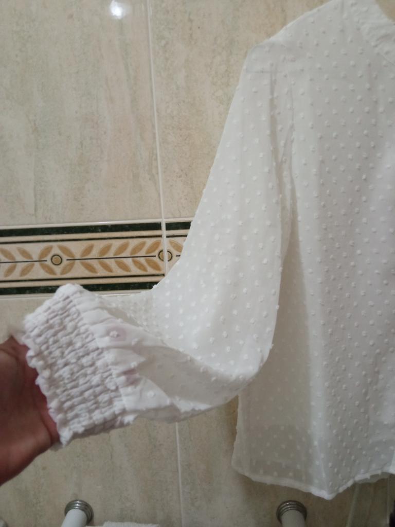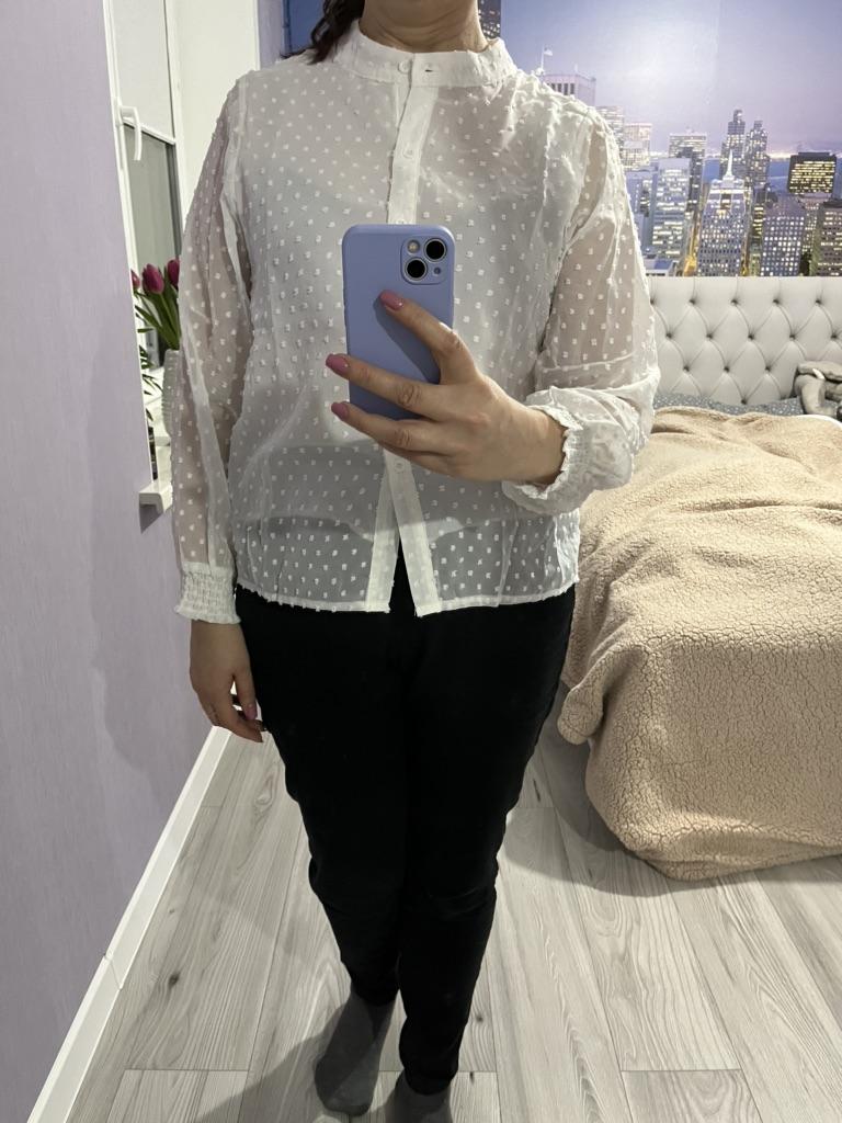 Bluzka idealnie leży i bardzo dobrze się prezentuje. Lekko prześwituje, ale to normalne w przypadku bieli.