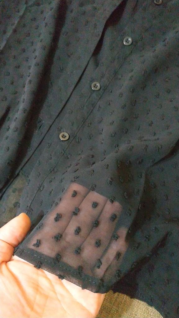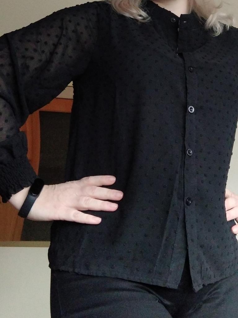 Bluzka idealnie leży i bardzo dobrze się prezentuje. Na rękawach jest lekko przezroczysta. Podwójna warstwa materiału sprawia, że pozostała część bluzki jest nieprzezroczysta.