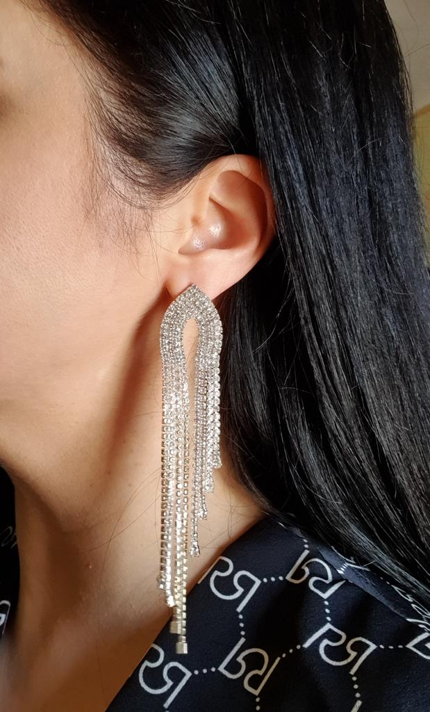 Kobiety rhinestone długie opływowe kolczyki z frędzlami kryształowe kolczyki kobieta dziewczyna biżuteria Pendante Femme