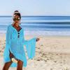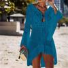 2020 Sexy Hollow Out dzianinowy przód krótki tył długa letnia sukienka plażowa damska kostiumy kąpielowe szydełkowa tunika