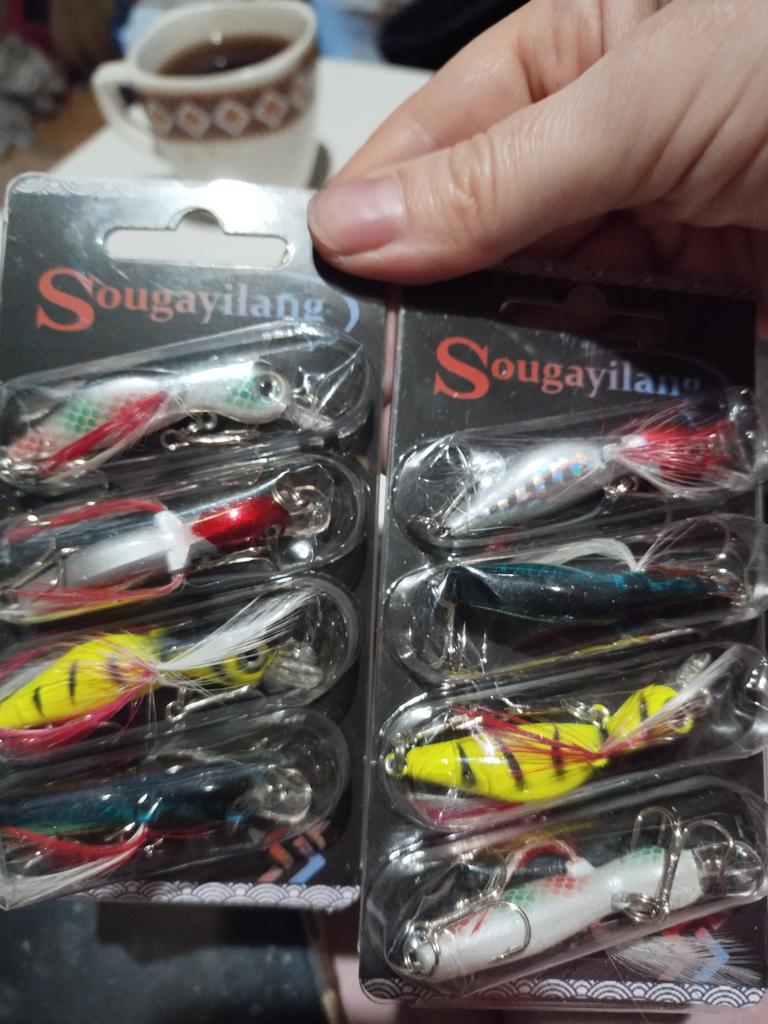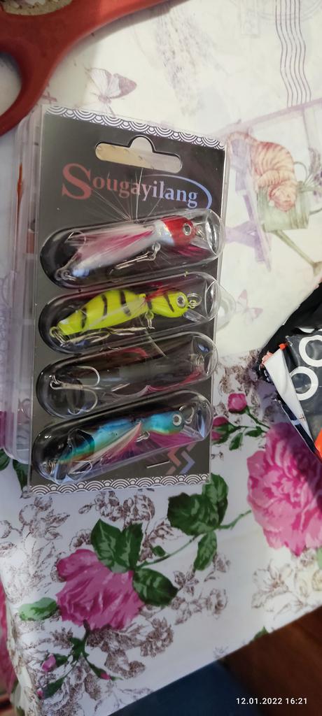 3 zamówienia w jednym pakiecie. Wszystkie towary są dobrej jakości, tylko są 4 przynęty. Okazały się mniejsze niż na zdjęciu.