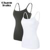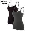 CHARMLEAKS Damska bawełniana koszulka na ramiączkach Bielizna damska Bielizna nocna Undies Biustonosz z półką Solidny, podstawowy podkoszulek Zestaw 2 sztuk