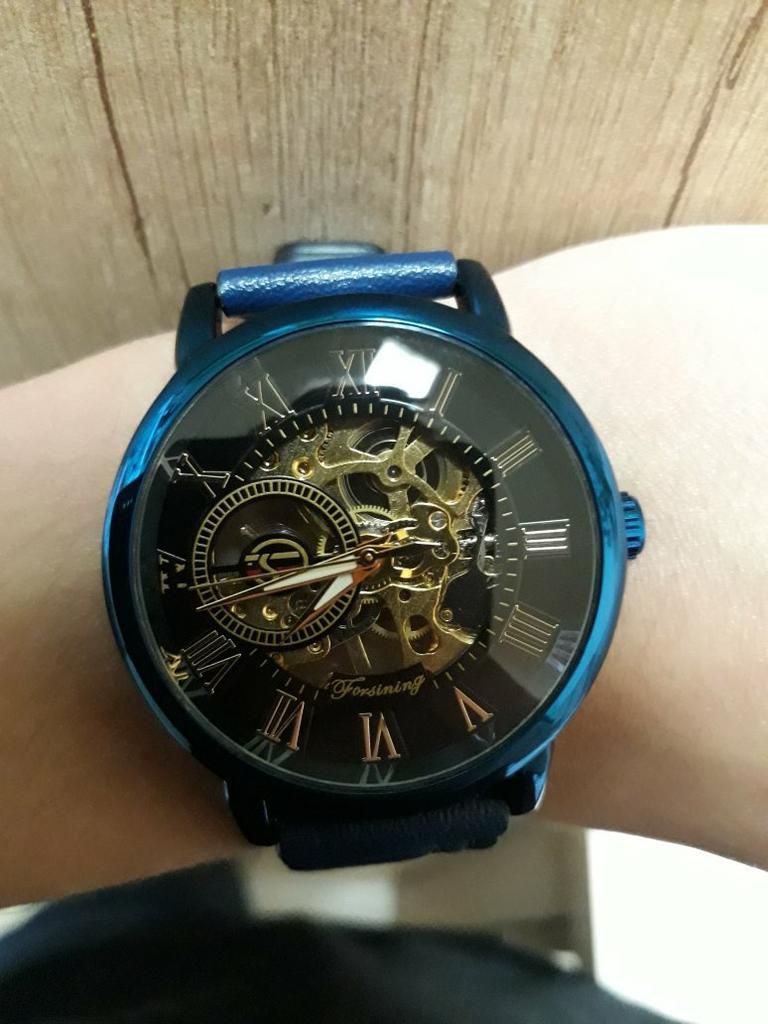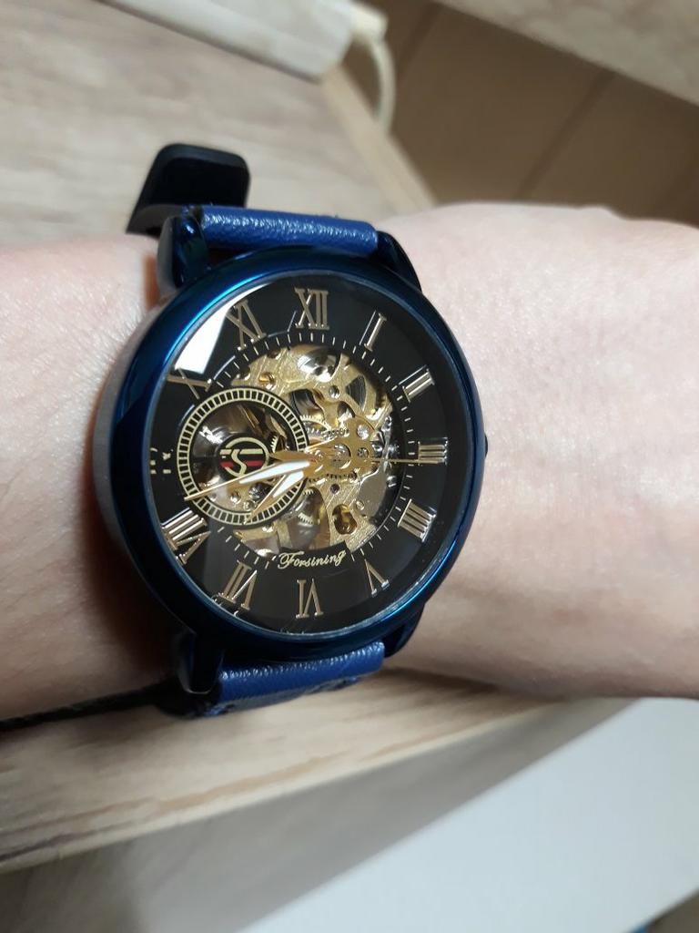 Kupiłem ten niebieski zegarek Forsining z niebieskim paskiem. Zegarek przyszedł bardzo szybko. Byłem pod wielkim wrażeniem. Wart swojej ceny. Poleciłbym ten produkt każdemu bardzo zadowolonemu klientowi *****