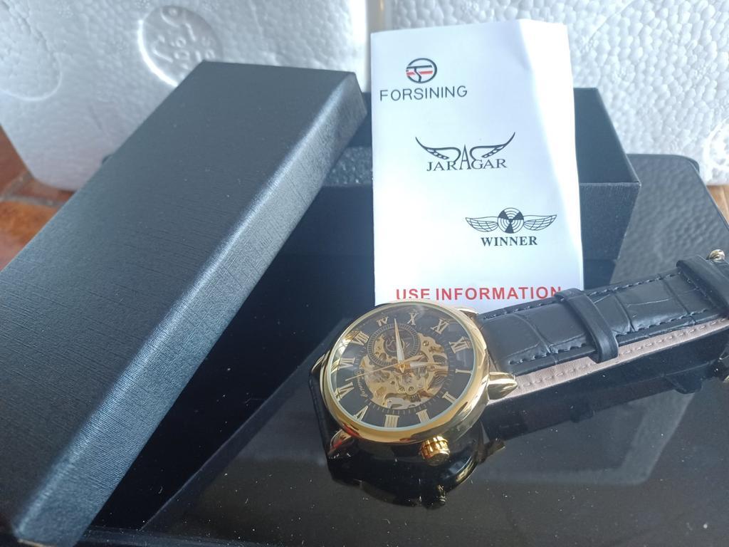 Cudowne, prawdziwe cudo. Dobrze zapakowane i doskonale zgodne. Zegarek mechaniczny nakręcany do stopera.