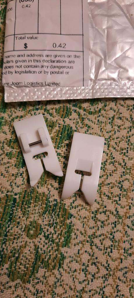Zamówienie zostało dostarczone w ciągu 30 dni, śledzone. Stopka wygląda całkiem nieźle i jest przyjemna w dotyku, gładka bez wad, mieści się pod adapterem w maszynie, zapakowana w kopertę z wybrzuszeniami, dotarła bez uszkodzeń, na stanie były 2 sztuki, co jest niezłe jak za taką cenę , dziękuję sprzedawcy