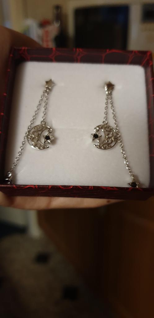 BAMOER modne nowe kolczyki ze srebra próby 925 w kształcie gwiazdy i księżyca z długim łańcuszkiem