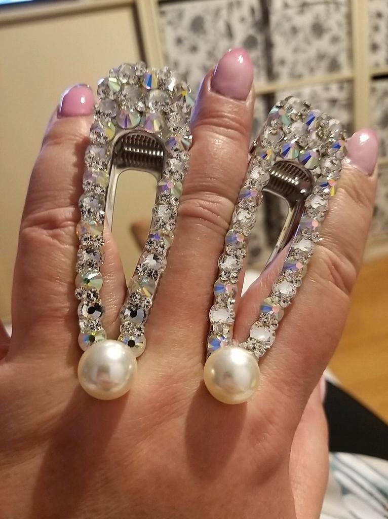 Śliczna wielka dobrze trzymająca spinka, tylko ta perła na końcu szpeci, ale jak sie oderwie to super. Blyszczy i przyciąga uwagę.
